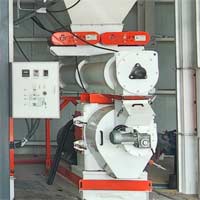 通過飼料制粒機將粉碎成細顆粒的各種動物飼料進一步制成顆粒。