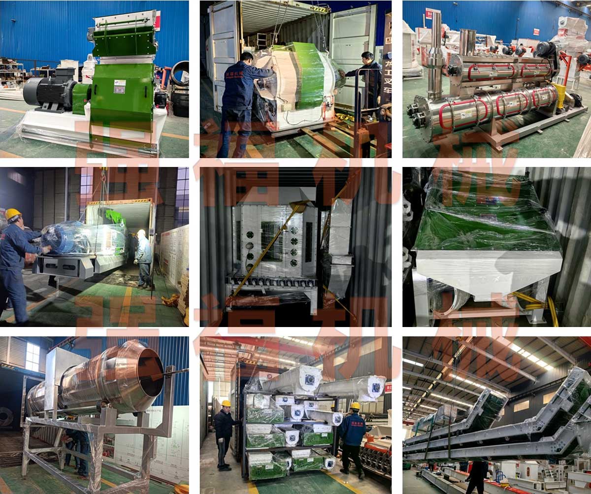 客戶定制顏色強福時產4噸濕法水產寵物膨化線發往南美
