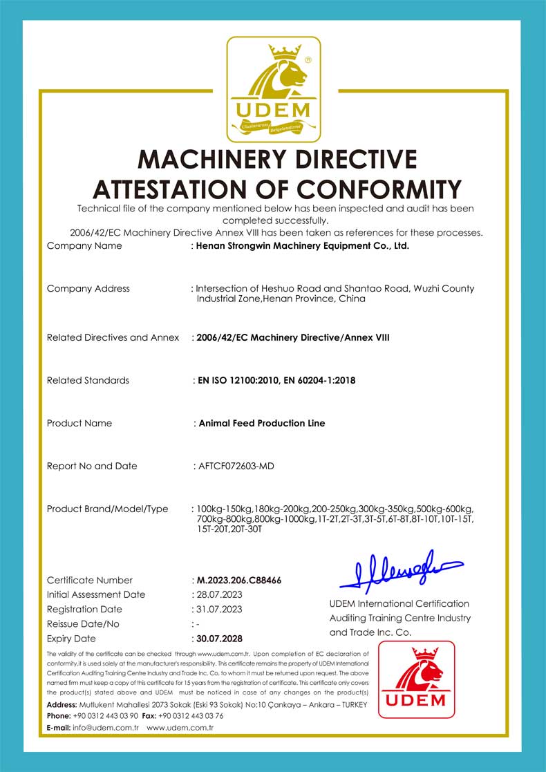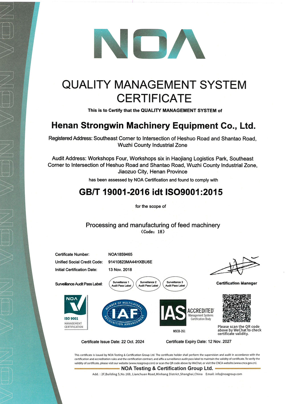 我們所有的制粒機和顆粒生產線均通過了ISO9001:2008和CE認證。